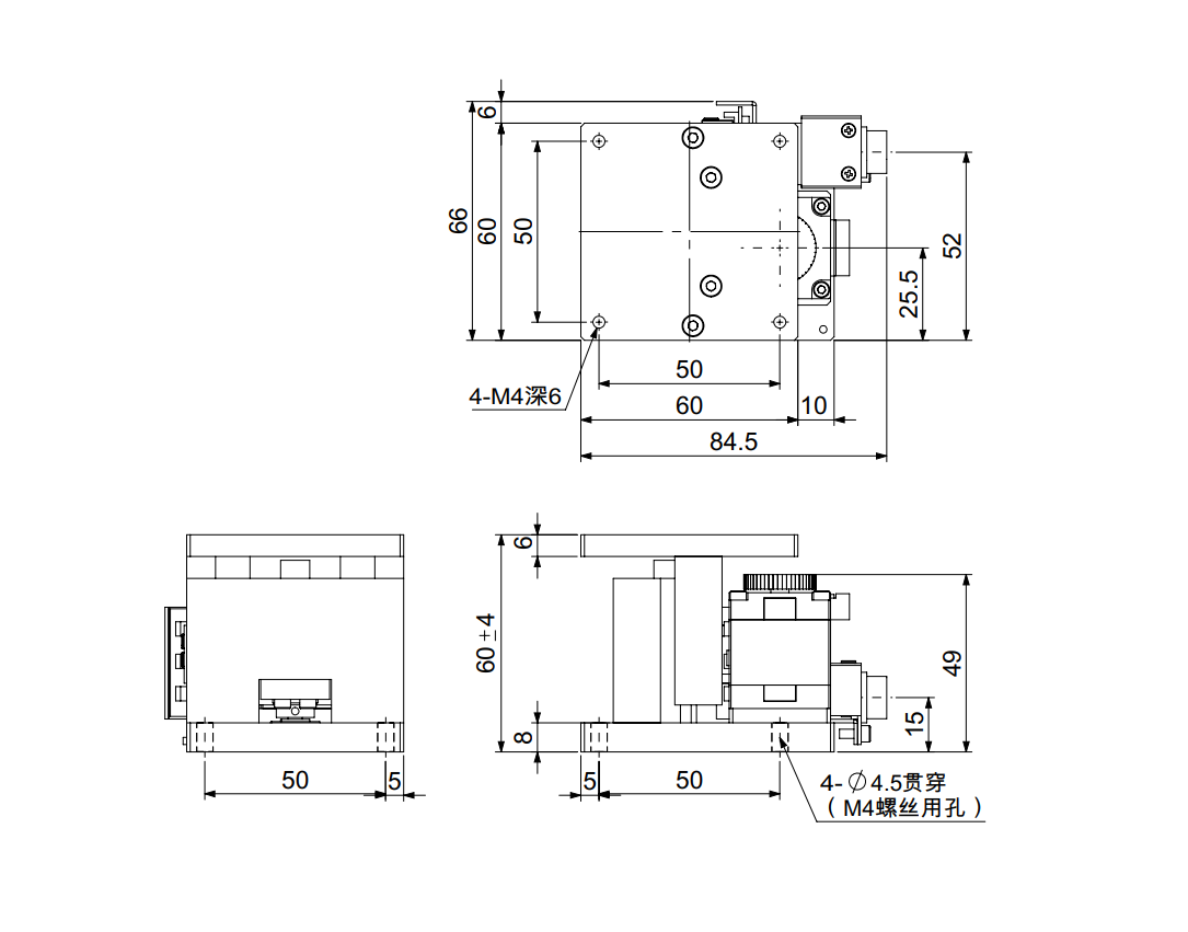 Z6008 Z軸(水平升降)精密電動位移臺,適配高精度科研場景。60×60mm臺面、8mm行程,負(fù)載4kgf、自重0.95kg,易集成安裝。1導(dǎo)程滾珠絲桿搭配直線導(dǎo)軌與28步進(jìn)電機(jī),最大速度10mm/sec,升降平穩(wěn)順滑。采用SUS440C無電解鍍鎳材質(zhì),重復(fù)定位精度達(dá)±5μm,多精度指標(biāo)嚴(yán)格管控,配備原點(diǎn)+限位傳感器,適配各類科研精密操作。